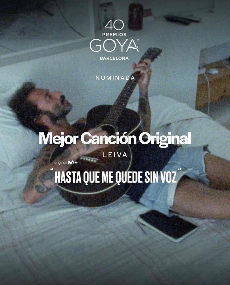 Leiva ha sido nominado a los Premios Goya 2026 por Hasta que me quede sin voz, el tema principal de la película documental de título homónimo, que competirá en la 40ª edición de los galardones del cine español en la categoría de Mejor Canción Original