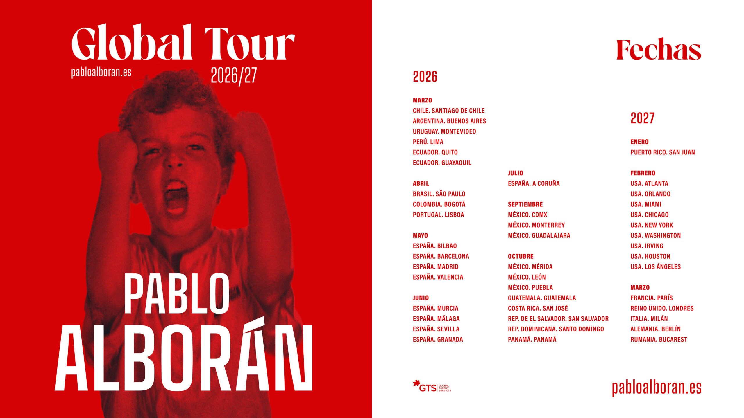 El lanzamiento de ‘KM0’ nos va a regalar canciones para emocionarnos, bailar y disfrutar, pero este disco también nos trae la vuelta de Pablo a los escenarios. Una gira que comienza en marzo de 2026 en Latinoamérica y que continuará hasta 2027 con conciertos por las principales ciudades de Europa, con parada por toda España. En todos los shows, el compositor unificará la pasión y emoción de sus grandes temas con un nuevo sonido más maduro e innovador marcado por el lanzamiento del nuevo disco, ‘KM0’. Las entradas ya están a la venta en www.pabloalboran.es